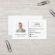 cartão de visita de modelo em design genérico branco comum com uma foto e um logotipo. Basta editar os detalhes do contato, adicionar o logotipo e alterar a foto. Estética moderna e limpa.