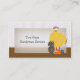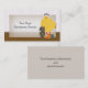 Este modelo de cartão de negócios é para um trabalhador manual, um reparo home ou uma indústria da construção da luz. A imagem é minha mão tirada e a imagem aumentada computador de um grande pássaro que guardara uma chave de fenda, com um boné manchado pintura nela é cabeça, inclinando-se em um cão cinzento pequeno com uma fita de medição. Há um balde da pintura no assoalho ao lado deles. Esta imagem está em um fundo que assemelha-se a uma sala com papel de parede listrado e um assoalho marrom. Você pode editar o texto, a parte dianteira e a parte traseira, para personalizar.