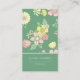 Estes cartões de visitas contemporâneos com fundo floral colorido em verde, rosa e amarelo, são na moda e brincalhões. O design inclui um conjunto moderno de fontes que combinam fundo verde e marfim no verso. Faça uma impressão duradoura com estas cartas retrorreflectoras divertidas e chicas.