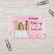A chic and modern business card design for makeup artists and beauty professionals. This layout features a soft pink background with leaf accents and elegant script typography. Perfect for salon owners, bridal makeup artists, and beauty consultants seeking a stylish, professional brand identity. Add your photo, QR code and business info for a personal touch.
