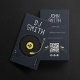 Este design na moda e moderno apresenta um fundo preto elegante com sotaques amarelos vibrantes, criando um olhar dinâmico e atraente para os olhos. Perfeito para DJs, produtores de música e outros profissionais de música que buscam um design contemporâneo e memorável. O design inclui: Um layout limpo e minimalista com fundo preto impressionante. Realces amarelos vibrantes para o nome, informações de contato e código QR, adicionando um pop de cor e interesse visual. Um código QR para fácil acesso à sua presença online, permitindo que os clientes se conectem a você instantaneamente.