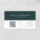 Cartão De Visita Modern Elegant Dark Green Initial QR Code