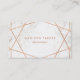 Este cartão de visita de na moda apresenta um fundo de aparência de mármore branco com um design geométrico de ouro rosa falso. Personalize com suas informações tanto na frente quanto no verso.