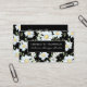 O moderno Cartão de visita de Padrão Floral de Ponto Girly Chic apresenta um bonito padrão floral branco em um fundo preto com seu texto personalizado e detalhes de contato. Personalize editando o texto nas caixas de texto fornecidas. Projetado para você pelo Evco Studio www.zazzle.com/store/evcostudio