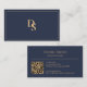 Cartão De Visita Modern Minimalist Dark Blue Initials QR Code