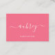 modern minimalist pink white script business card , elegant pink and white business card , add your social media.