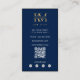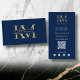 A beautiful blue and gold monogram initials design and your QR Code. This elegant business card is ideal for all types of professions. A simple and professional way to introduce your business. Customize the social media icons in this design to suit your business needs. Personalize your details to create your own unique monogrammed business card.