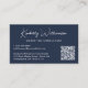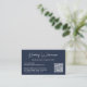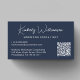 Professional dark blue business card featuring your name in a chic white script and your title and contact information (such as email, telephone numbers, firm name and mailing address) in clean, simple white lettering. Input a URL address to create a scannable QR code linked to your website, social media profile, or other platform that showcases your work, making it easy for others to explore your expertise. Personalize additional text on the back or leave blank.