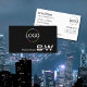 Cartão De Visita Moderno branco preto clássico com monograma e logo