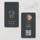 Introduzindo o símbolo final do profissionalismo e sofisticação - o Elegante cartão de visita MINIMALISTA MODERNA DENTIST DOURADO TOOTH. Com seu impressionante logotipo de dente dourado, foto redonda, código qr e texto personalizável em ouro opulente, este cartão expele elegância e refinamento. O fundo escuro acentua os elementos dourados, que se somam, criando uma sensação de luxo e exclusividade. Quer você esteja trabalhando em rede com clientes sofisticados ou construindo sua marca, este cartão vai causar uma impressão duradoura e diferenciá-lo da concorrência. Deixe seu cartão de visita falar muito sobre sua expertise e estilo com a placa Elegante MINIMALISTA MODERN DENTIST DOURADA TOOTH.