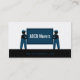 Cartão de visita moderno, lustroso com uma paleta de cor do azul, preto e branco. O cartão de visita tem dois motores que estão vestindo chapéus e macacões azuis, movendo uma caixa enorme delicada. Você pode personalizar a caixa com seu nome da empresa. Grande cartão de visita para qualquer um que está no transporte por caminhão, na entrega, transportando serviços, logística ou negócios moventes. Personalize facilmente com seus detalhes do negócio.