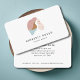 Moderno, moderno, moderno, branco, salão, logotipo feminino, cartão de visita. Um salto colorido para um bom humor. Perfeito para cosmeticista, cabeleireiro, prego, chicotadas e maquilhagem de artistas, fotógrafos e outros provedores de serviços.