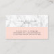 O design de cartão de visita bonito que caracteriza o mármore branco com cora textura cor-de-rosa e pia batismal elegante da caligrafia.