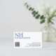 Cartões de visitas modernos de código QR apresentando um design azul e branco simples e mínimo com seu monograma em uma fonte em negrito junto com seu nome no canto superior esquerdo. Suas informações de contato estão no canto inferior direito.