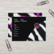 Elegante, elegante, design único colorido; branco preto listrado, padrão de pele de zebra selvagem com uma pedra brilhante rosa violeta.Você pode mover gemstone para personalizar com suas iniciais e seu próprio texto.Este cartão artístico e legal é perfeito para cabeleireiro, designer de fantasia, maquiador, figurantes, designers de roupas, proprietários de boutiques, cosmeticistas, cosmetólogos, perfumes, compradores pessoais, consultores de guarda-roupa e outras profissões criativas.