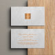 Cartão de visita monograma clássico em textura branca de aparência de couro com um quadrado brilhante metálico-brilhante de cobre de ouro falso. +++++++++++++++ Fácil de personalizar em ambos os lados! +++++++++++ Adequado para consultores, estilistas pessoais, maquiadores, cabeleireiro, gerente de salões, designers ou arquitetos internos, proprietários de butiques, blogueiros de estilo de vida, artistas, provedores profissionais de serviços de luxo.