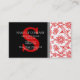 Cartão De Visita Monograma Damask Red Black Cinza Na moda Modern