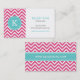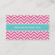 Cartão De Visita Monograma de Chevron Rosa-Quente e Turquesa