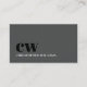 Modelo de cartão de negócios elegante totalmente personalizável com fundo de cinza texturizado exclusivo e seu monograma preto em negrito. Perfeito para consultores, advogados, advogados ou profissionais do setor financeiro.