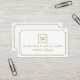 Cartão De Visita Monograma de Deco de Arte Branca e Dourada