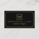 Cartão De Visita Monograma de Deco de Arte Preta e Dourada