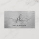 Cartão De Visita Monograma de Script de Silver Metálico Faux Elegan