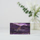 Cartão de visita de na moda elegante, com agato roxo e mármore com veias douradas falsas e acentos de brilho e iniciais de monograma com script de caligrafia de rico, com hastes. ALTERAÇÕES: Altere qualquer estilo de fonte de texto, cor, tamanho e posicionamento ou exclua/mova os ícones de contato em EDIT. ASSISTÊNCIA: Para obter ajuda sobre modificação ou personalização do design ou se você quiser coordenar itens, entre em contato com o designer ANTES DE ENCOMENDAR, por meio da guia MENSAGEM de Bate-papo Zazzle ou por e-mail makeitaboutyoustore@gmail.com.