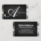 Cartão De Visita Monograma de Script Grande | Prata preta