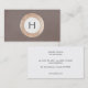 Sofisticado e glamouroso, esse cartão de visita retrô inspirado é perfeito para profissionais de entretenimento, seja ele um coordenador de eventos, um estilista de moda ou um artista freelancer. Imagem digital do emblema circular enquadrado da sequência de cobre sobre fundo de linho castanho esticado escuro. Não há brilho ou textura nesta placa.