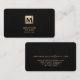 Cartão de visita de luxo moderno com aspecto preto sujo (impresso), com um medalhão de monograma metálico brilhante de ouro falso (impresso). Fácil de personalizar de ambos os lados. Adequado para consultores, agentes imobiliários, estilistas pessoais, maquiadores, hairstylists, gerentes de salões, designers ou arquitetos de interiores de casa, proprietários de butiques, blogueiros de estilo de vida, artistas, provedores de serviços de luxo ou outros profissionais de negócios.