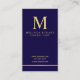 Cartão De Visita Monograma Elegante marinho Azul e Dourado