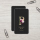 Cartão De Visita Monograma Elegante Moderno P Preto Floral Dourado