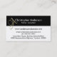 Um cartão de visita com uma letra de design com uma letra maiúscula acinzentada em cores douradas para dar um olhar metálico, sobre um fundo preto na frente. O inverso é dividido em painéis brancos e pretos, com os modelos de texto e de nome e negócios iniciais dourados.