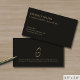 Faça uma impressão duradoura com nossos Cartões de visitas mínimos modernos apresentando tipografia clássica em um fundo preto elegante. A parte traseira apresenta um emblema e espaço impressionantes de monograma de script em ouro para um texto de isenção de responsabilidade ou personalizado do setor. Perfeito para profissionais de negócios que procuram criar uma impressão duradoura.