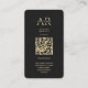 Monograma Elegante Moderno Um Cartão de visita Dourado Floral Preto com código QR. Por favor, me avise por DM se você tiver alguma pergunta ou algo assim.