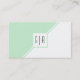 Cartões de visitas modernos do monograma verde e branco. A frente inclui duas faixas diagonais, uma verde-menta e outra branca, que separam o cartão em dois triângulos. A