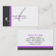 Um fundo branco com um grande carvão vegetal coloriu a listra e um roxo menor coloriu a listra no lado de mão esquerda do cartão. No centro do cartão é uma grande inicial em cinzas macias. Seus nome e título estão na parte dianteira e toda informação restante está na parte traseira.