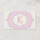 Cartão De Visita Monograma numa moldura de gingham branco rosa