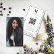 Um belo design de fotos de cheio que incorpora fontes tipográficas modernas e seu Código QR e identificador de mídia social. Estas cartão de visita elegantes são ideais para todos os tipos de profissões. Uma maneira simples e profissional de promover sua empresa. Um cartão de visita perfeito e simples. Personalize seus detalhes para criar seu próprio cartão de visita exclusivo.