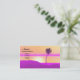 Cartão de visita com meu design original de um ensolarado ouro, púrpura e palmeira rosa numa ilha.