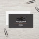 A sleek business card featuring a motorcycle silhouette with a touch of orange against a dark charcoal background. It may also be used for motorcycle or automotive services, including sales, shop, repair, and motorcycle school.