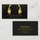 O cartão limpo da música do DJ do disco-jóquei com o auscultadores no ouro na superfície matte preta está atual na maneira elegante. Confetes de brilho no resíduo metálico preto com o auscultadores dourado para o disco-jóquei.