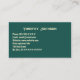Esta dramática cartão de visita do professor de guitarra apresenta um verde-escuro, esmeralda e espiral de ouro ao fundo, com silhuetas de ouro de guitarristas dançando em primeiro plano. O seu nome e as suas informações de lição de música aparecem num bloco de cores escuras de esmerald green. Você pode editar o instrumento e o texto da lição como gostaria, contanto que ele ajustado o espaço alocado. No verso, seu nome e detalhes de contato aparecem na mesma cor dourada contra um verde correspondente. Este cartão fornece um modelo fácil de usar para suas informações de contato. Você pode mudar o que está em cada linha como você gostaria, mas apenas certifique-se de que ele ajustado os limites do cartão.