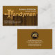 Uma cerca de madeira de madeira com camada superior castanha clara é acentuada por um motivo de ouro fino "Handyman"; A letra-H é feita de um par de panelas e uma chave de fenda. No topo está o seu nome prestigioso e uma opção de slogan para divulgar os seus serviços ; Mude os comentários de legenda para o slogan para se adequar às suas próprias necessidades. Abaixo do motivo estão os seus contatos.