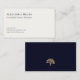 Faça uma impressão duradoura com nossos Cartões de visitas de Na moda minimais modernos e duplos apresentando tipografia clássica em um fundo de marfim suave. A parte azul do marinho contém uma árvore dourada em greve que pode ser substituída pelo seu logotipo. Perfeito para qualquer profissional de negócios que queira criar uma impressão duradoura.
