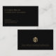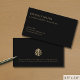 Faça uma impressão duradoura com nossos Cartões de visitas profissionais modernos Na moda com tipografia clássica em um fundo preto elegante. A parte traseira apresenta um emblema geométrico dourado impressionante que pode ser substituído pelo seu logotipo, juntamente com espaço para uma isenção de responsabilidade do setor. Perfeito para contabilistas, preparadores de impostos, consultores financeiros ou qualquer profissional de negócios que deseje criar uma impressão duradoura.