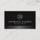 Moderno adicione seus próprios cartões de visitas de logotipo com seu nome e título nos campos de modelo frontal e personalizável para nome, título e informações de contato no verso. Na frente está uma borda de gradiente de cinza.