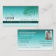 Cartão De Visita Na moda Teal Gradient Palm Leaf Logo e Foto