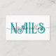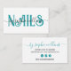 Um modelo de cartão de negócios de design de artista de unhas editável, com identificadores de mídias sociais e tipografia de vintage lacrimogênea contrastada com seu nome na escrita.