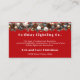 Natal, Feriado, Cartão de visita para seu negócio de iluminação e decoração. Ornamentos bonito, luzes brilhantes e galhos de pinheiro de Natal. O reverso tem Papais noeis no seu trenó voando através da lua brilhante, e a árvore de Natal decorada. Personalize o texto e a fonte de acordo com as suas especificações.